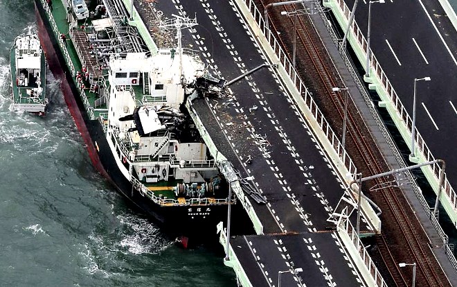 L´image du jour: Onze morts, + de 600 blessés, de nombreux dégâts matériels et le chaos à l´aéroport d´Osaka, le typhon Jebi qui a balayé le Japon hier restera dans les annales!!! En lien une série de photos de la casse après le passage de JEBI... EN SAVOIR +