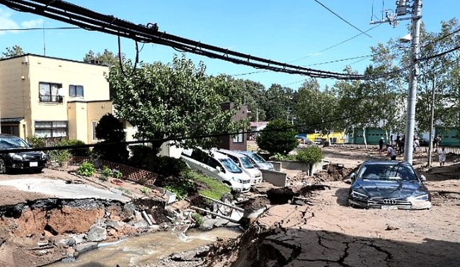 Ce jeudi, 2 jours après le passage du typhon JEBI, le nord du Japon a été secoué par un séisme de magnitude 6,6. D´énormes glissements de terrain et une coupure de courant généralisée s´en sont suivis. Un bilan encore provisoire fait état de 9 morts et plus de 30 portés disparus. Des montagnes ont été coupées en 2 par les éboulements, qui ont arraché tous les arbres et englouti des maisons! EN SAVOIR +