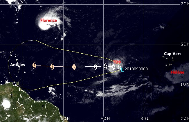 La tempête tropicale FLORENCE reste prévue suivre une route Ouest en se creusant et toucher terre avec + de 100nds de vent au Nord de la Floride! Dans son Sud-Est la dépression tropicale n°9 devrait faire route directe vers les Antilles en se creusant! Une tempête tropicale nommée HELENE située au Sud-Est du Cap Vert, est prévue passer au Sud de l´archipel en se renforçant! A suivre... EN SAVOIR +